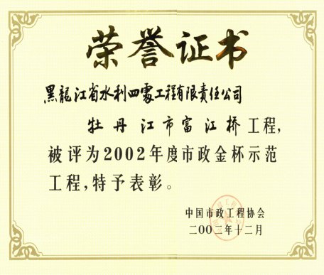牡富江橋榮譽證書