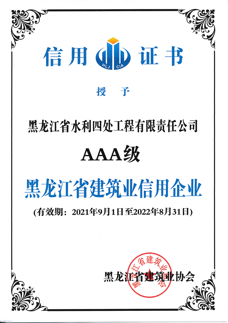 黑龍江省建筑業(yè)AAA級信用企業(yè)
